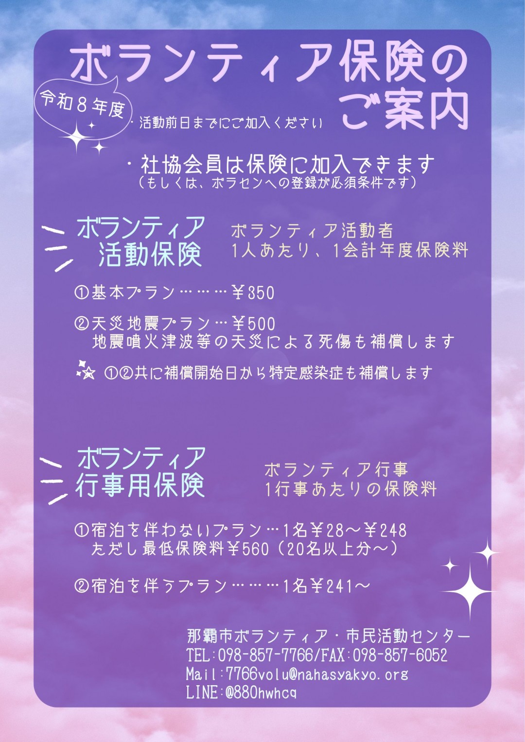 ★保険の申し込みは、那覇市社会福祉協議会の会員になるか、那覇市ボランティア・市民活動センターへご登録が条件となります。